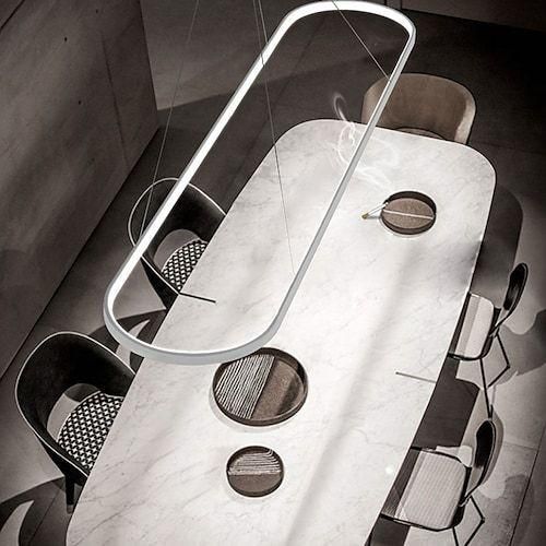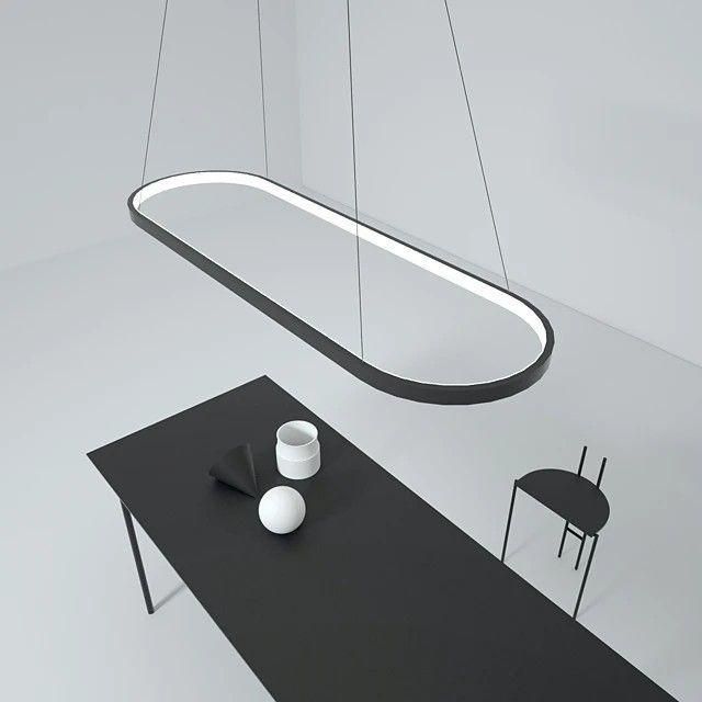 لوستر خطی بیضی دلوری با بدنهی آلومینیومی رنگ کورهای و نور LED قابل تعویض،