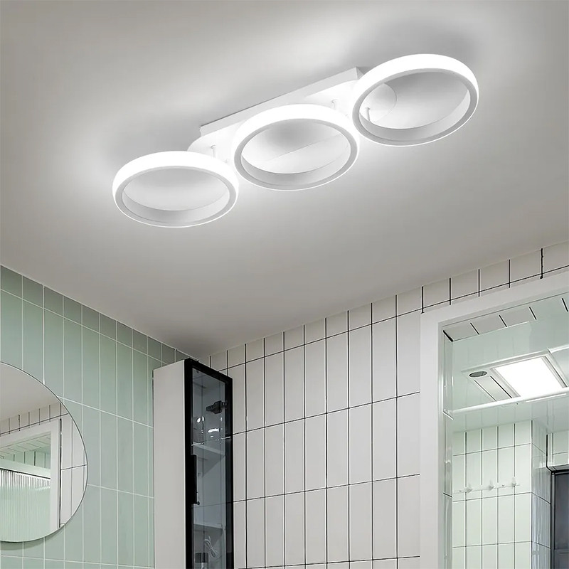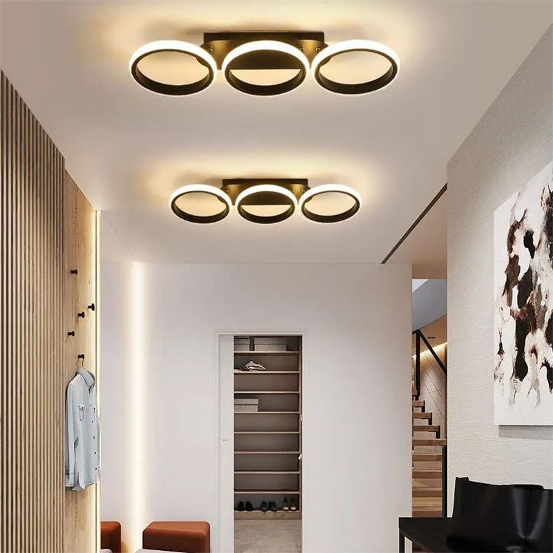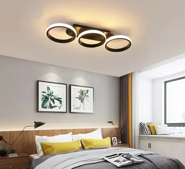 لوستر سقفی شیک و مدرن با طراحی دایرهای و خطی، مناسب برای خانهها و فضاهای تجاری با دکوراسیون مدرن.