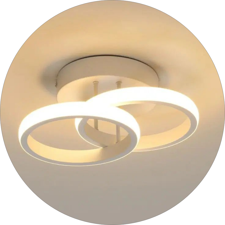 این لوستر از نوع LED مدرن و کمارتفاع است که به صورت مستقیم به سقف نصب میشود و به دلیل طراحی خاص با دو حلقه نورانی درهمتنیده، جلوهای بسیار زیبا، مینیمال و همزمان لوکس به فضا میدهد.
