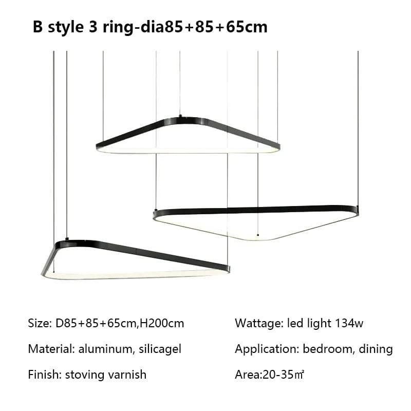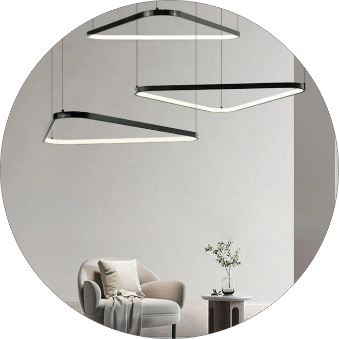 لوستر سقفی مدرن طرح مثلث کد مناسب انواع اتاق و پذیرایی سایز ها سی و پنجاه و هفتاد سانتی متر ارتفاع از سقف قابل تنظیم رنگ نور آفتابی و نچرال  و یخی میتوانید سفارش دهید ریسه های این لوستر  قابل تعویض سه سال طول عمر مفید بدنه آلومینیومی ضخیم میزان نوردهی 100 وات رنگ بدنه سفید و مشکی و طلایی رنک بدنه رنگ کوره ای درجه یک