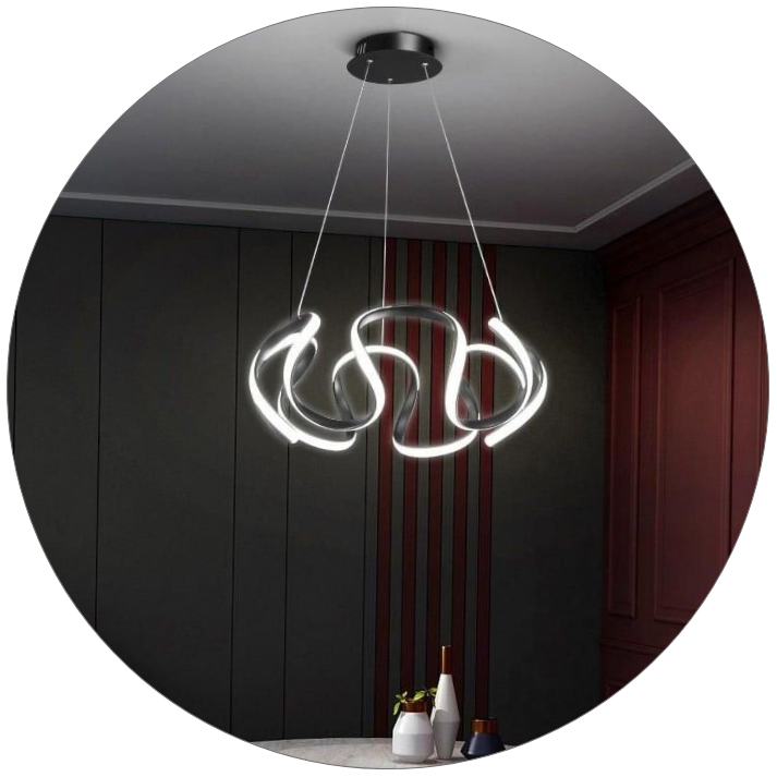 • حتی می‌توان با تنظیم نابرابر آویزها، فرم هنری و پویایی در چیدمان نور ایجاد کرد.