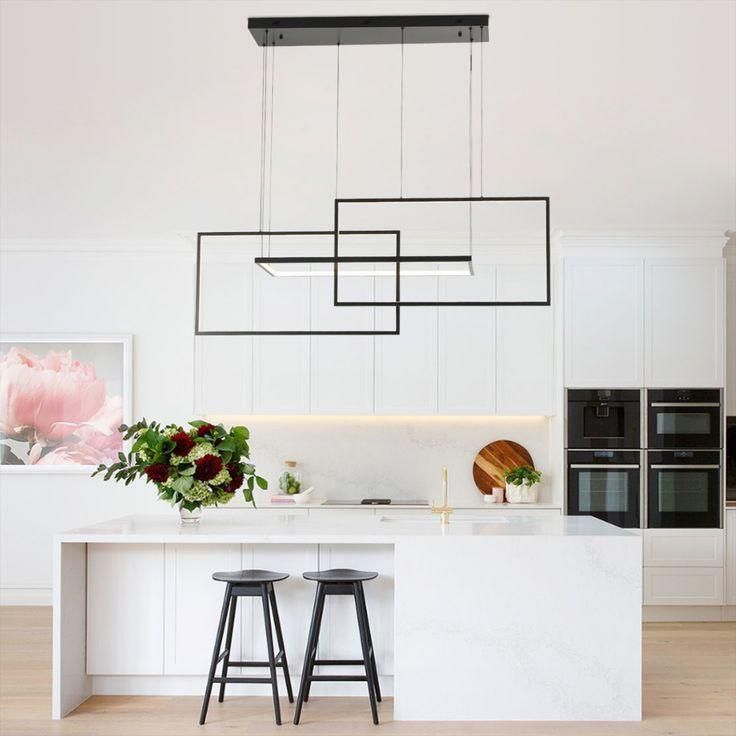 این لوستر با طراحی مستطیلی زنجیرشده، نمایی متفاوت و چشمنواز ایجاد میکند و نور ملایم و یکنواخت آن، حس گرما و آرامش را به فضا منتقل میسازد.