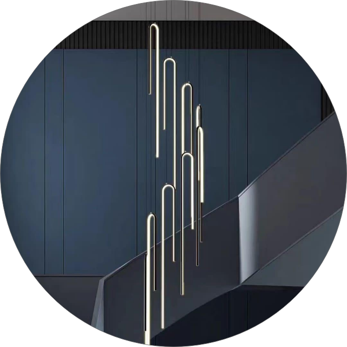 • حتی می‌توان با تنظیم نابرابر آویزها، فرم هنری و پویایی در چیدمان نور ایجاد کرد.