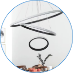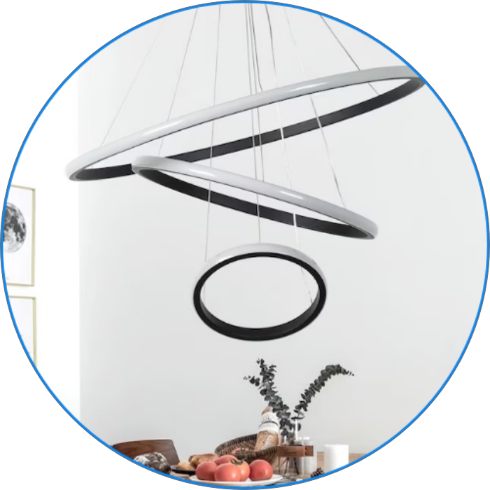• حتی می‌توان با تنظیم نابرابر آویزها، فرم هنری و پویایی در چیدمان نور ایجاد کرد.