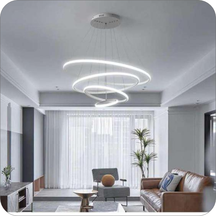 لوستر LED مدرن سقفی حلقه‌ای چهار طبقه، یک چراغ آویز خلاقانه و مدرن است که با طراحی منحصر به فرد و نوردهی حرفه‌ای، جلوه‌ای لوکس و شیک به فضای داخلی شما می‌بخشد. این لوستر مناسب سالن پذیرایی، اتاق غذاخوری، اتاق نشیمن و اتاق خواب است و با قابلیت تغییر حالت آویز شدن، فضایی متناسب با دکوراسیون ایجاد می‌کند.