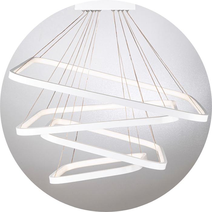 • حتی می‌توان با تنظیم نابرابر آویزها، فرم هنری و پویایی در چیدمان نور ایجاد کرد.