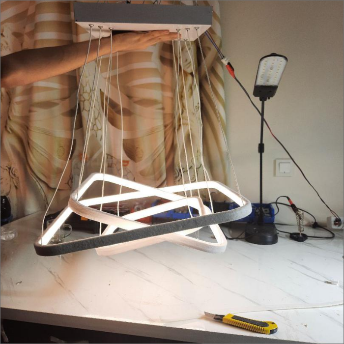 • حتی می‌توان با تنظیم نابرابر آویزها، فرم هنری و پویایی در چیدمان نور ایجاد کرد.