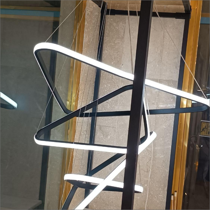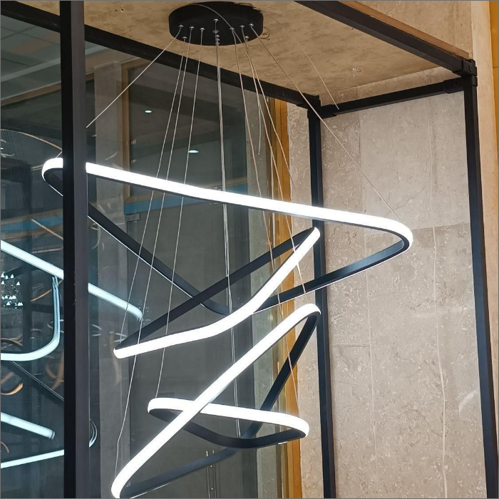 حتی میتوان با تنظیم نابرابر آویزها، فرم هنری و پویایی در چیدمان نور ایجاد کرد.